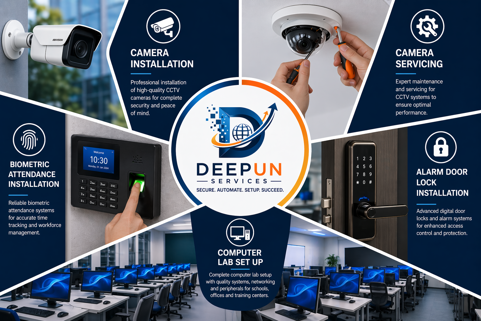 At Deepun Services, we transform challenges into opportunities for growth. As a trusted partner to schools, hospitals, retail outlets, hospitality, and financial institutions, we deliver innovative solutions tailored to your vision. From advanced technology setups and digital transformation to branding, content creation, and seamless daily social media operations, our expertise ensures your business stays ahead in a fast-changing world.
